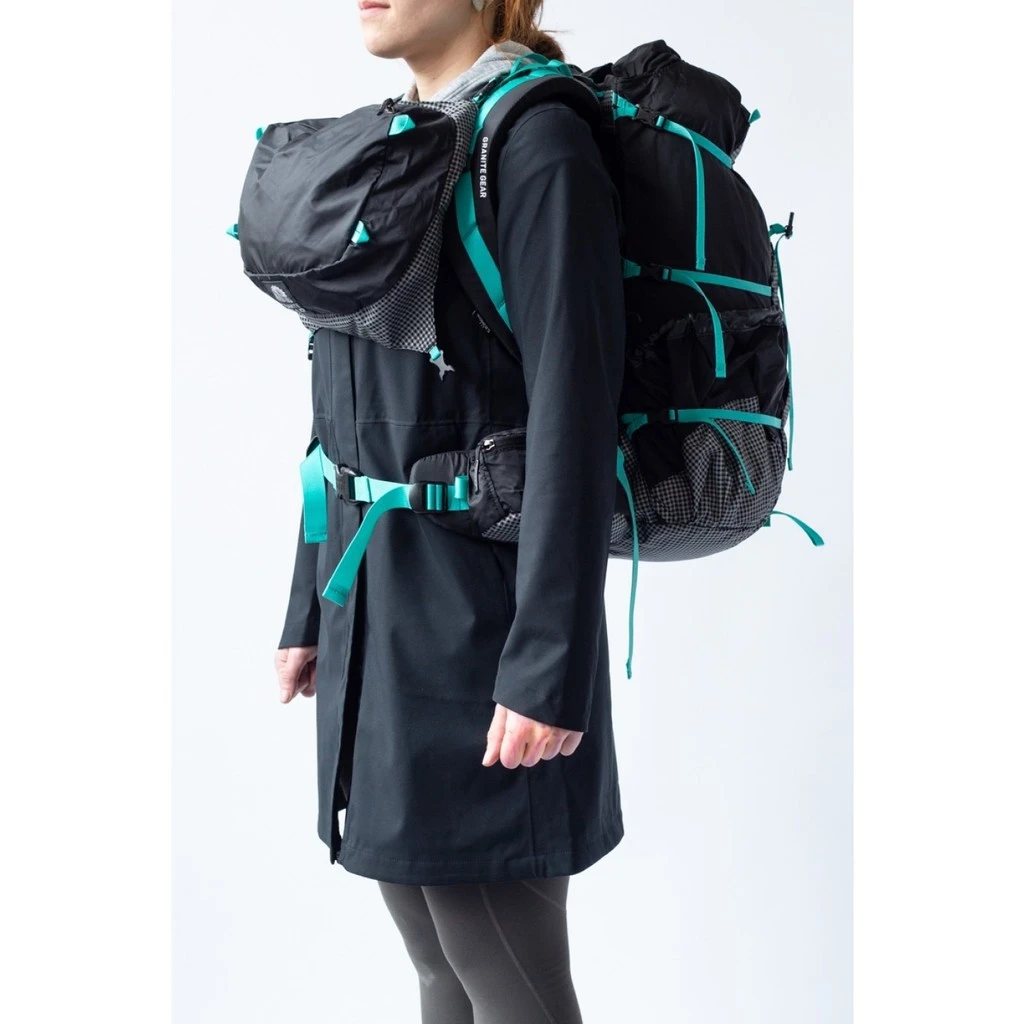 Il est constitué d’un grand volume accessible par le haut grâce à une ouverture/fermeture par enroulement. Une fermeture éclair verticale sur toute la hauteur permet également un accès rapide par le devant. Les nombreuses lanières permettent de bien sangler le sac à dos. Au niveau de la ceinture se trouvent deux poches zippées. Sur les côtés, deux grandes poches généreuses permettent de ranger deux gourdes chacune et une grande poche en mesh extensible est placée sur le devant. Le capot peut être ramené sur le torse pour une utilisation frontale pour un accés à porter de mains. Il peut aussi être combiné avec la ceinture amovible pour obtenir un petit sac, très pratique pour se faire une balade une fois le bivouac installé !