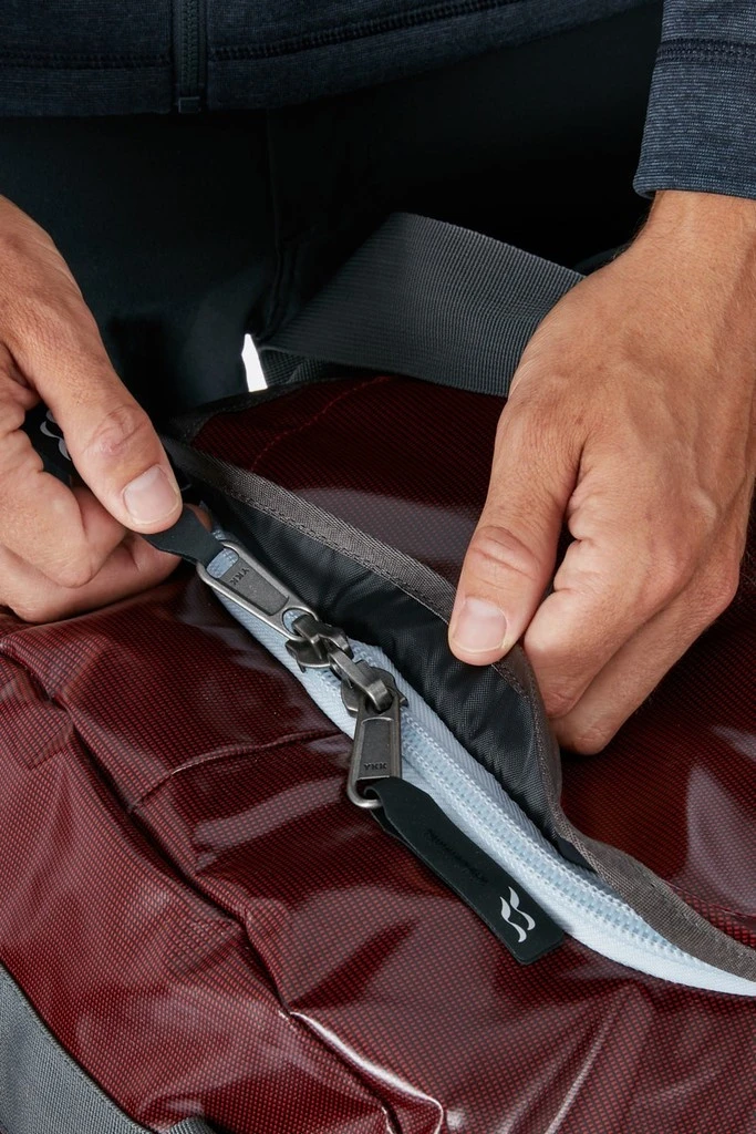 Le sac s’ouvre sur tout dessus, par une fermeture éclaire robuste. Il possède 2 bretelles et 4 poignées avec plusieurs prises possibles, pour le transporter plus facilement. Sa capacité est de 80 litres, il est parfait pour des expéditions polaires, en haute altitude ou pour du trekking.