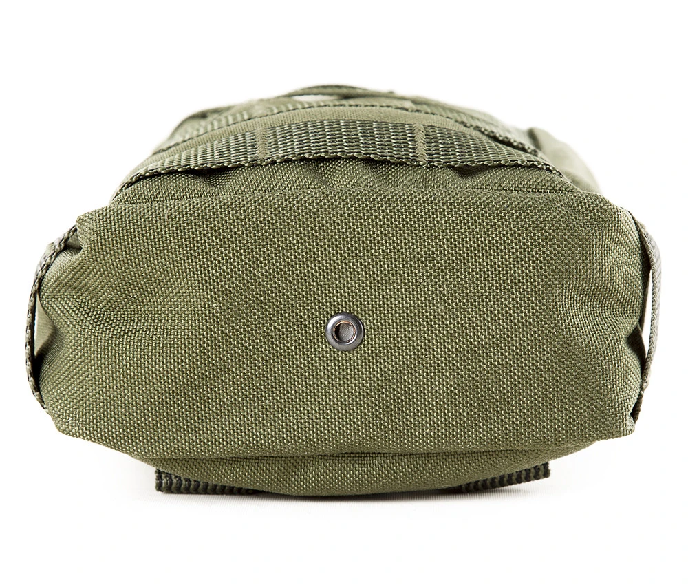 Elle est fabriquée avec du Cordura 1000 deniers ce qui lui permet d’être résistante à l’abrasion et à l’usure. Le bas de la poche est équipé d’un anneau de drainage en métal.