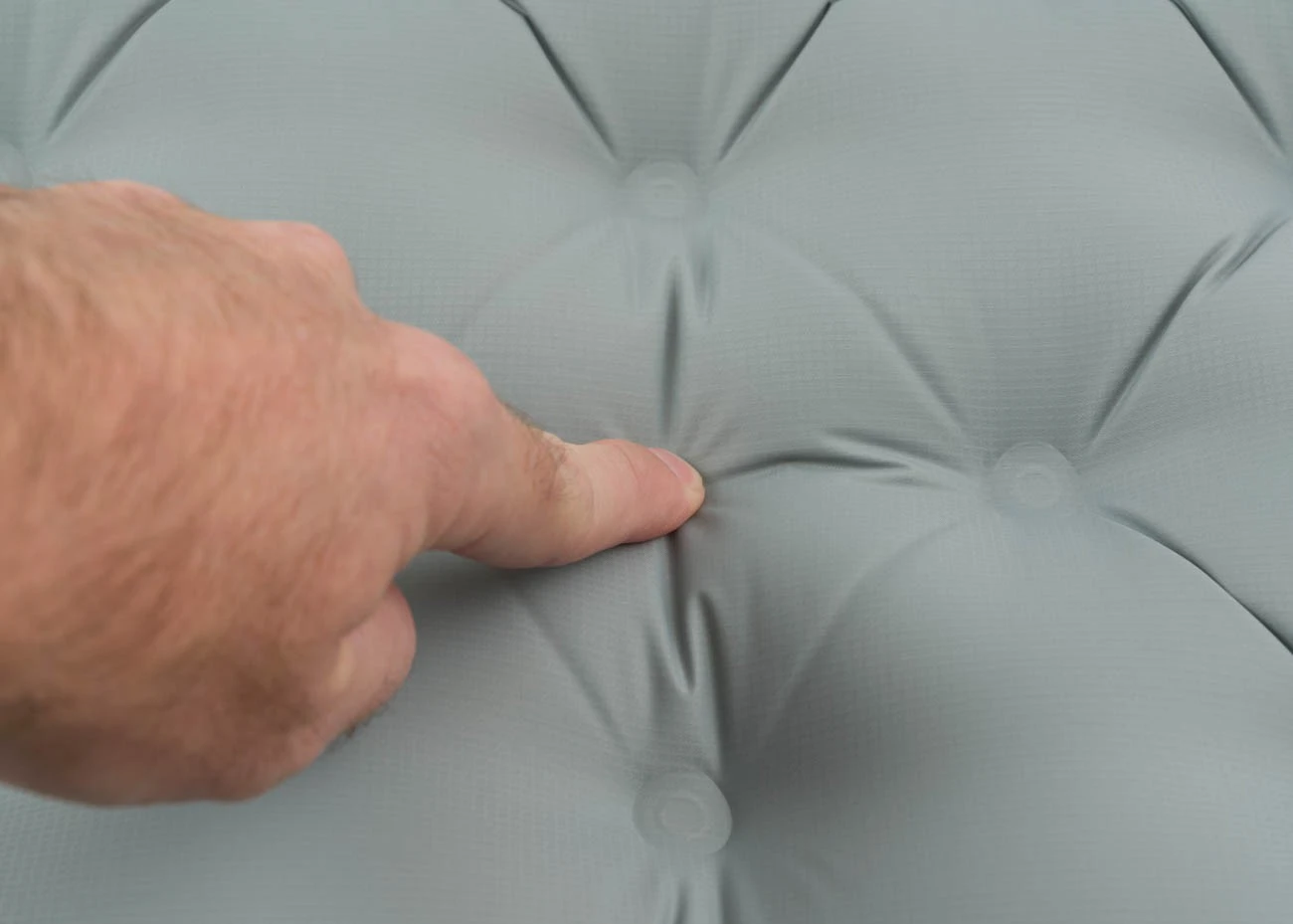 L’Ether Light est un matelas gonflable utilisant la technologie « Air Sprung Cells » qui sont des cellules d’air maillées entre-elle avec du TPU. Cette conception en cloisons permet de créer des poches d’air volumineuses en utilisant moins de tissu par rapport à un matelas traditionnel. Au final, l’Either Light Insulated en taille 183 cm ne pèse que 425 grammes.